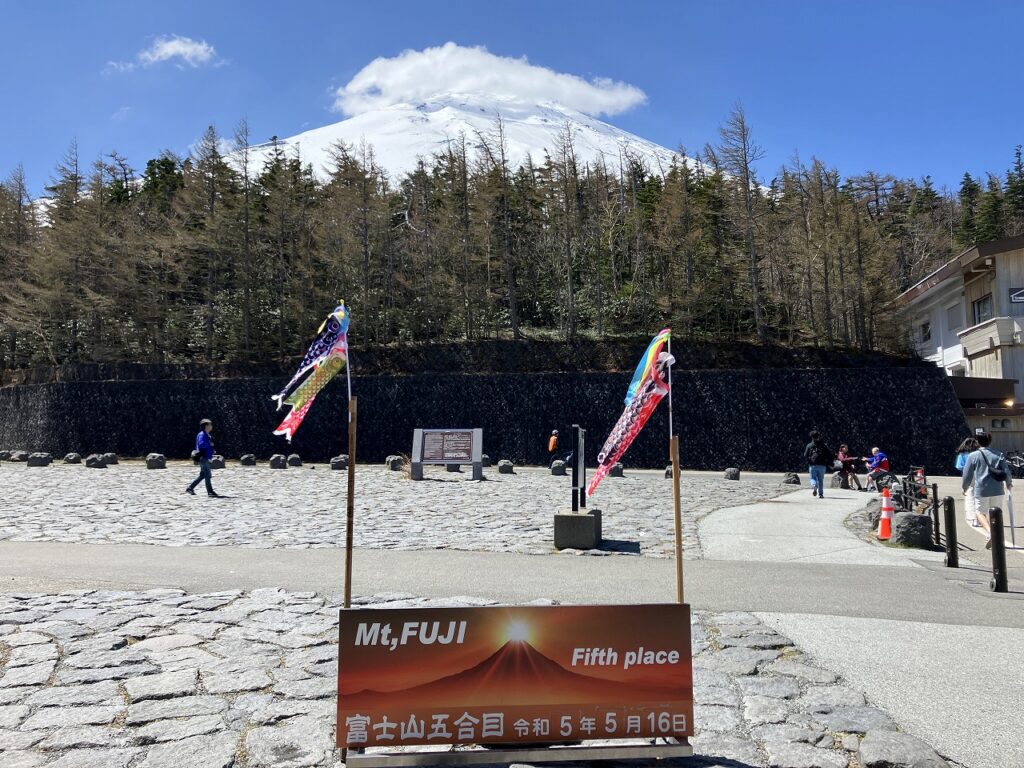 5合目は、大きい駐車場・広場・お店・神社・登山道があって、他のみなさまも広場で写真を撮っていました。