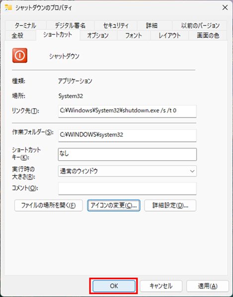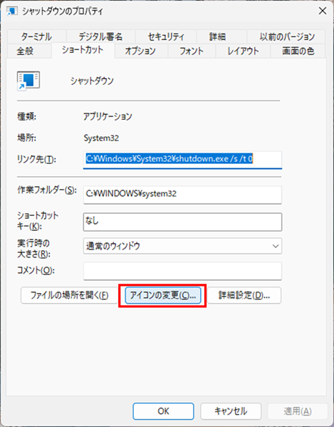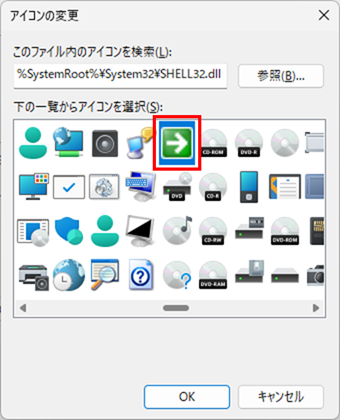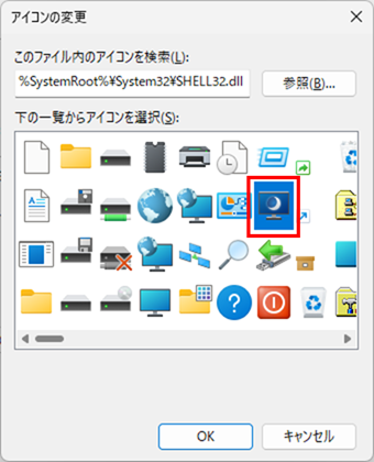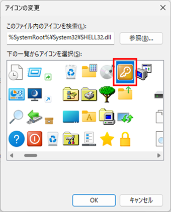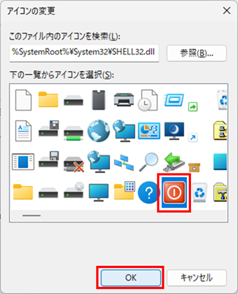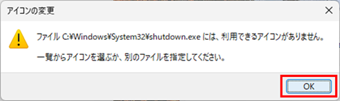 「アイコンの変更」のダイアログが表示されたら、OK。